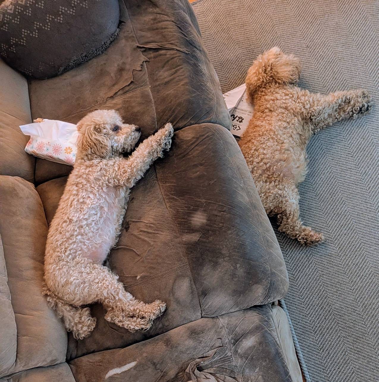 2025/12/14 同じ格好で寝ているうちのコたちです。ソファでぬくぬく、床でゴロゴロ。思わず頬が緩んでしまいますペットを愛する飼い主さまなら思わず共感してしまう可愛い1コマです。 #ペット火葬 #訪問火葬 #ペット葬儀 #ペットセレモニー #ペットメモリアル #寝屋川市 #守口市 #門真市 #摂津市 #四条畷市 #枚方市 #ペットの思い出 #愛犬家 #プードル