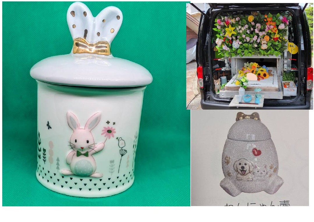 ずっと一緒にいた家族だから、最期まで心を込めて。ウサギちゃんとワンちゃんネコちゃんの専用骨壺です。可愛らしいデザインの骨壺、ハート型の飾りと金色のリボンが優しく彩ります。大切な子の個性に合わせてお選びいただけます。一つひとつの命に敬意を込めて、丁寧にお見送りのお手伝いをさせていただいております。ご自宅までお伺いし、穏やかで温かなひとときをお届けいたします。